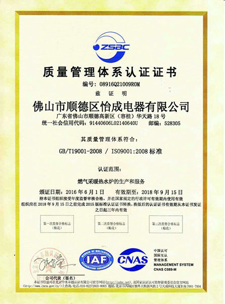 佛山市順德區(qū)怡成電器有限公司屬下有八部一室,三大車間,工程技術(shù)人員和管理人才100多人,一大批現(xiàn)代化五金生產(chǎn)設(shè)備,自動噴涂生產(chǎn)線和功能齊全的現(xiàn)代化生產(chǎn)線,公司為做好壁掛爐產(chǎn)品,從一開始就選用高、精、尖的生產(chǎn)設(shè)備和檢測設(shè)備和自動翻版檢測設(shè)備。連續(xù)配氣系統(tǒng)設(shè)備,NOX綜合測試裝置,五合一全電腦綜合測試設(shè)備儀器,測試的準確性、可靠性及耐久試驗都在同行具有水平。